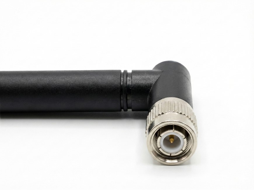 Antena de Radiofrecuencia Flexible con Conector TNC Macho en Ángulo (90°) – Color Negro, Diseño Robusto para Equipos Industriales y de Comunicación