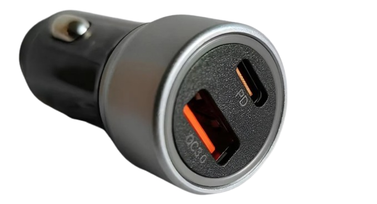 El cargador de auto modelo K20 permite cargar tus dispositivos mientras conduces de forma rápida y segura. Cuenta con dos puertos de carga: USB y USB Tipo C, ofreciendo una potencia total de hasta 38W ⚡, ideal para dispositivos compatibles con carga rápida.