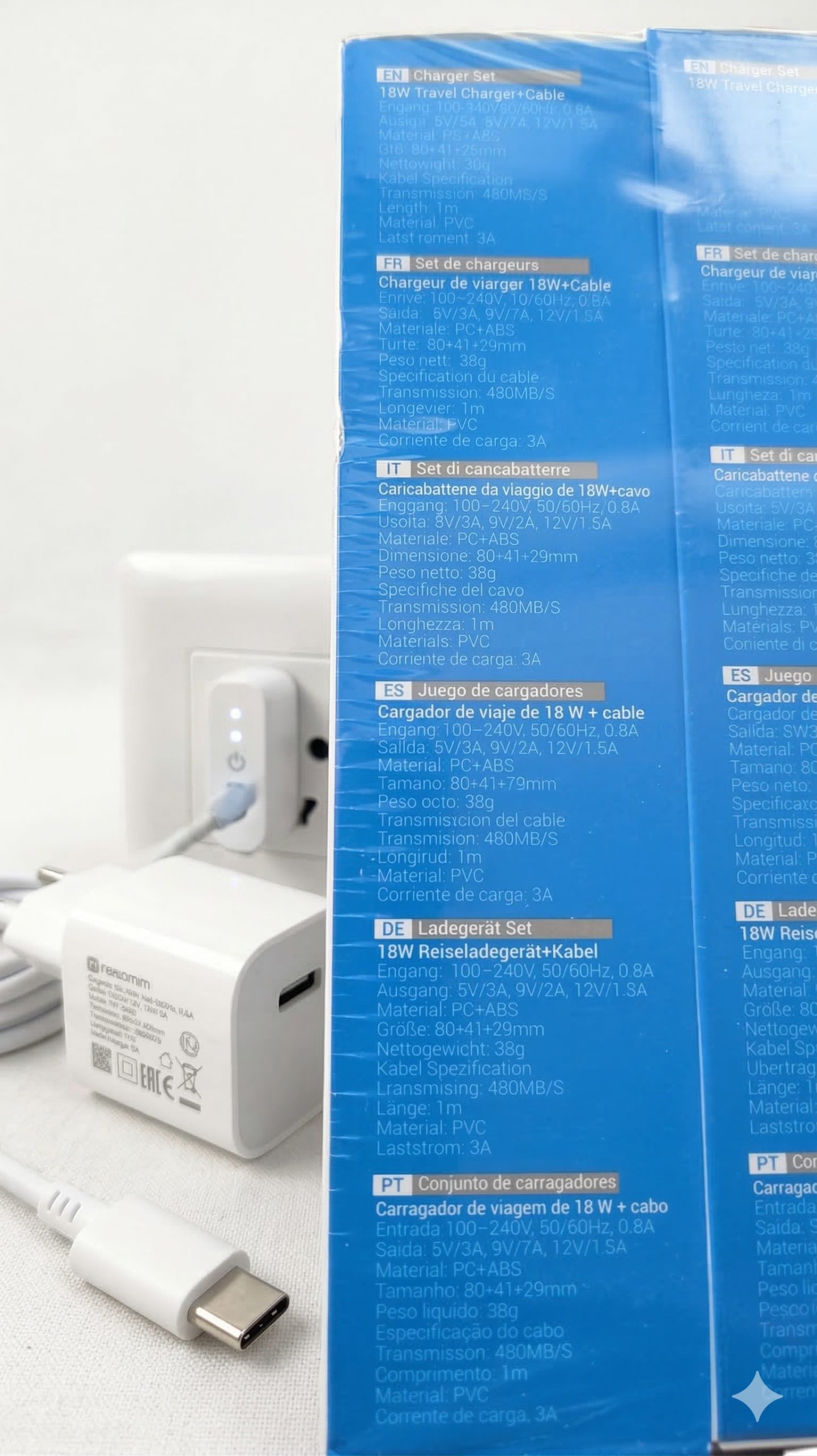 Gracias a su tecnología de carga rápida de 18W ⚡, permite reducir el tiempo de carga en comparación con cargadores tradicionales. Su diseño compacto y resistente lo hace perfecto para usar en casa 🏠, oficina 💼 o viajes ✈️.