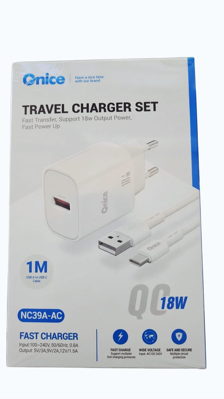 ⚡ Cargador rápido QNICE NC39A-AC de 18W con cable Type-C de 1 metro incluido. Ideal para cargar smartphones y dispositivos compatibles con carga rápida, con diseño compacto, seguro y práctico para uso diario. 🔌📱 5v 3A