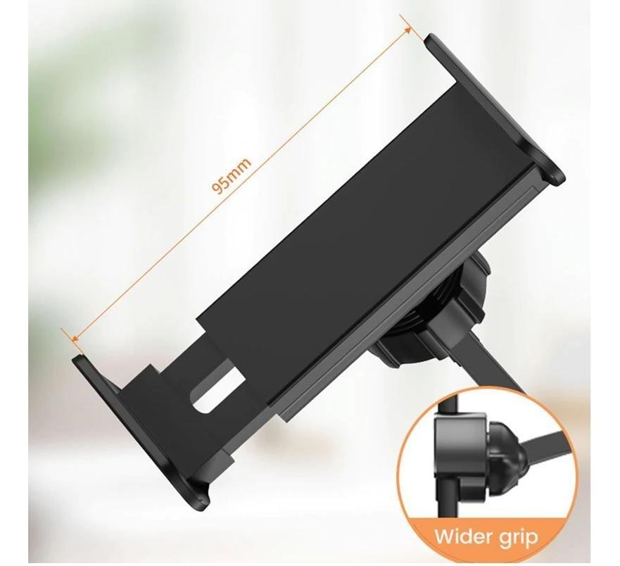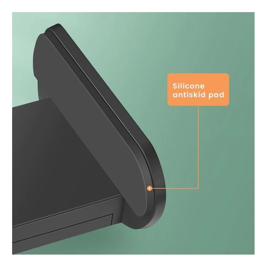 Es compatible con teléfonos de hasta 9 cm de ancho, ofreciendo un agarre firme y seguro. Su diseño moderno en color negro combina perfectamente con cualquier escritorio u oficina.