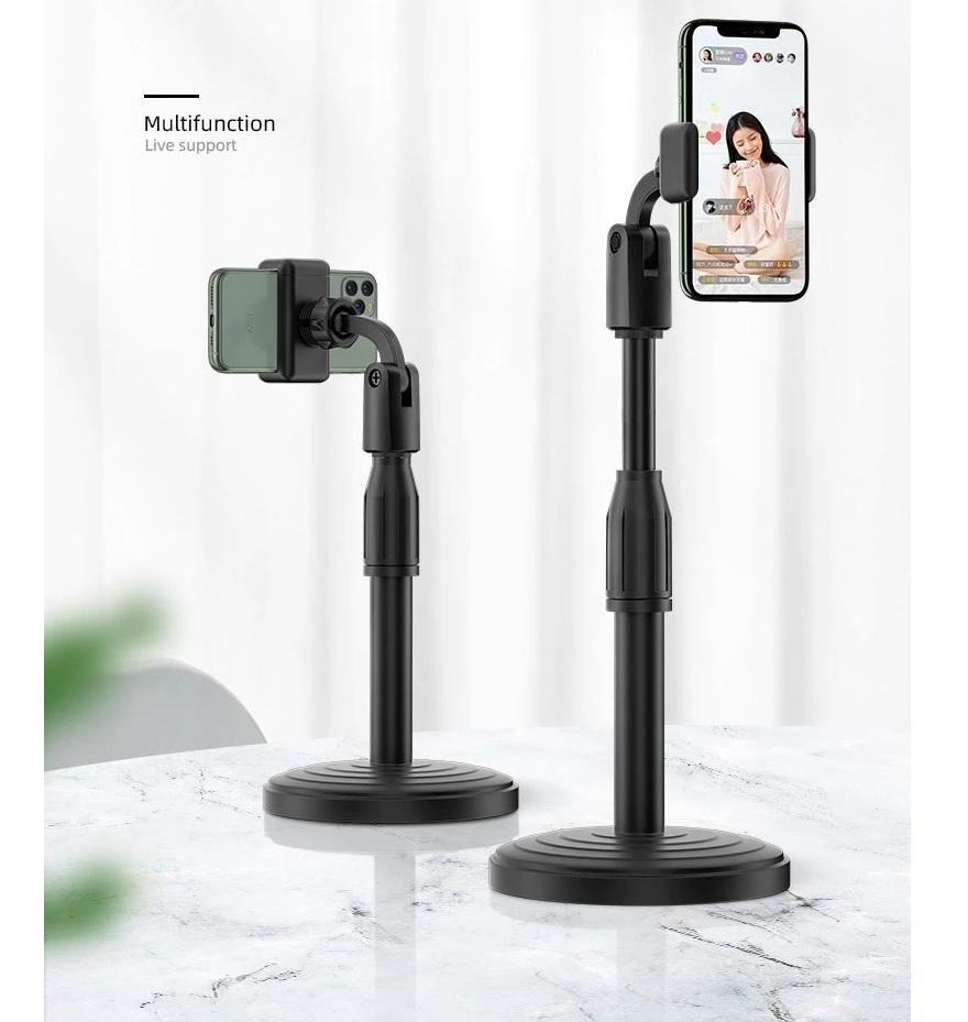 📱 Soporte para celular de escritorio extensible de 20 a 30 cm, compatible con teléfonos de hasta 9 cm de ancho. Cuenta con rotación 360° para ajustar el ángulo de visión. Ideal para videollamadas, ver videos o trabajar cómodamente. 🔄