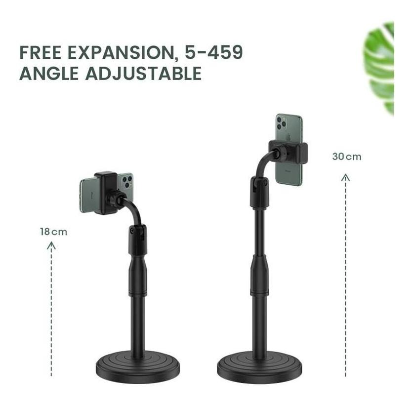 El soporte para celular de escritorio es ideal para mantener tu teléfono en una posición cómoda mientras trabajas, estudias o disfrutas contenido. Su diseño extensible de 20 cm hasta 30 cm permite ajustar la altura según tus necesidades.